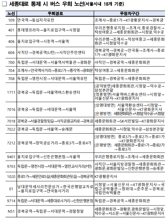 (경기전) 광화문 일대 지하철 . 버스 막차 연장