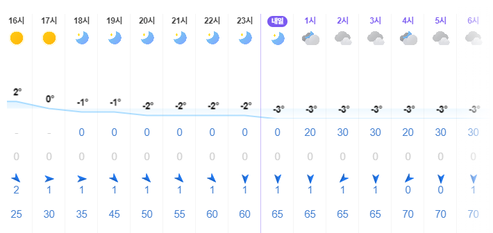 오후 체감온도는 8도~10도이지만 저녁에는 더 추워질 수 있기에 방한용품 핫팩, 담요는 필수