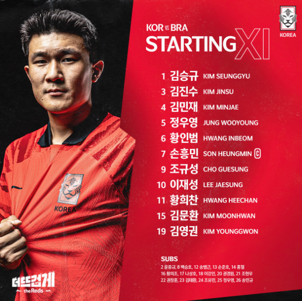 ✅ 브라질전 출전 명단 또한 아래에서 확인 가능합니다.