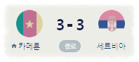 | 3 | 카메룬 | 2 | 0 | 1 | 1 | 3 | 4 | -1 | 1 |