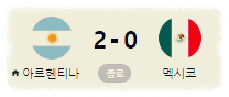 | 2 | 아르헨티나 | 2 | 1 | 0 | 1 | 3 | 2 | 1 | 3 |