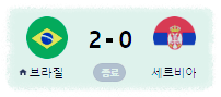 | 1 | 브라질 | 2 | 2 | 0 | 0 | 3 | 0 | 3 | 6 |