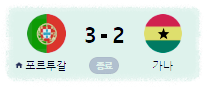| 1 | 포르투칼 | 2 | 2 | 0 | 0 | 5 | 2 | 3 | 6 |