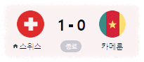 | 2 | 스위스 | 2 | 1 | 0 | 1 | 1 | 1 | 0 | 3 |