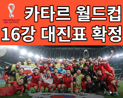 카타르 월드컵 16강 대진표 확정에 대해서 알아보기에 앞서 오늘 새벽에 있었던 대한민국 VS 포르투갈의 경기는 대이변 기적이 일어났습니다. 포르투갈 상대로 2:1 역전승 사상 두 번째 월드컵 16강 진출을 하게 되었습니다. 앞으로의 대진표는 어떻게 되는지 확인하도록 하겠습니다.