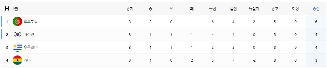 | 11월29일 화요일 | 04:00 | 포르투칼 | 우루과이 |